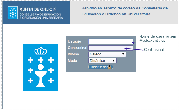 A ventá de acceso aos diferentes servizos web é sempre a mesma, coa excepción do acceso ao novo correo corporativo, que pode presentar outra. Vémolas.