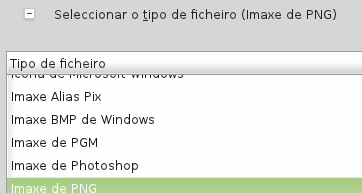 e na parte infoerior preme na cruz que hai ao lado de "Seleccionar o tipo de ficheiro (por extensión) e elixe formato xfc , propio de GIMP