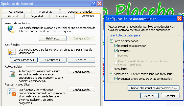 - Indícalle a Internet Explorer que garde os datos dos formularios e que non pregunte antes de gardar os contrasinais.