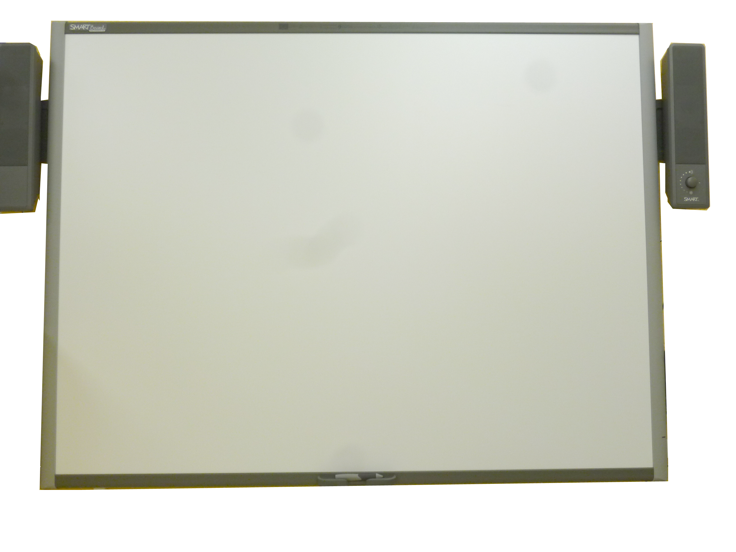 Pizarra Dixital Interactiva SmartBoard 680V, do tipo que se instala nos centros educativos deGalicia con altofalantes acoplados.