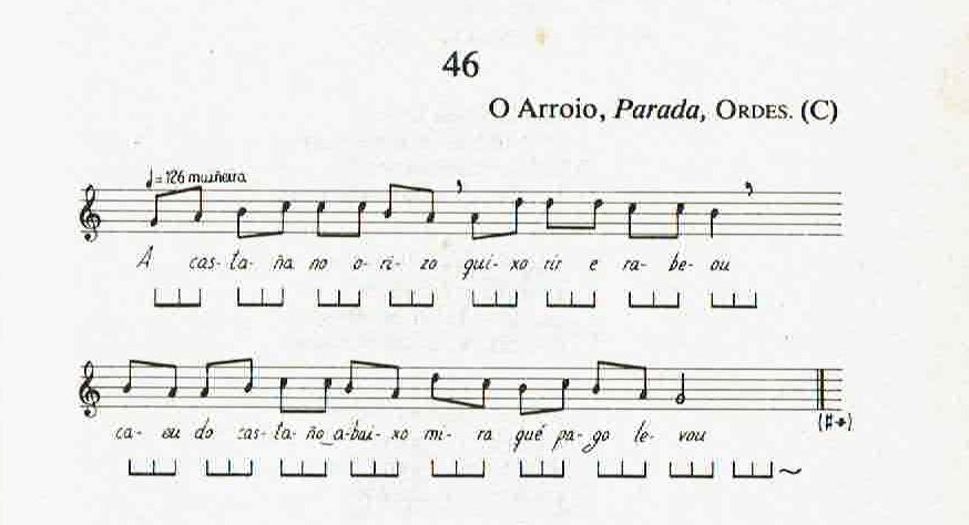 Partituras e arquivos multimedia descargables. A partitura corresponde a Dorothé Schubarth e Antón Santamarina, Cántigas populares (Vigo: Galaxia, 1995), 83.