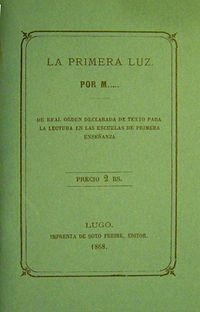 En 1859 o matrimonio trasladouse a Santiago de Compostela, e con motivo do nacemento da súa primeira filla, en maio, publicou La Primera Luz, un libro de lecturas escolares estruturado en vinte temas de historia e xeografía, que o Ministerio de Fomento recomendou para o ensino nas escolas de Galiza. Esta obra foi reeditada en Lugo en 1868.