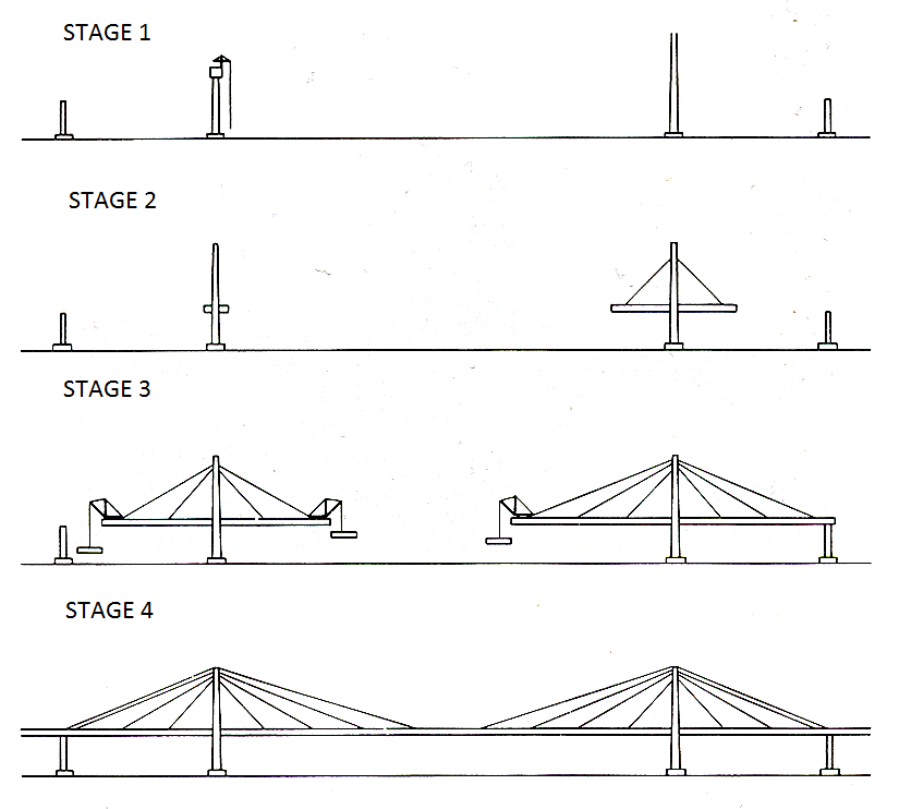 Click on the image below to read a description about cantilever-method construction in a cable-stay bridge.