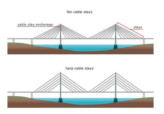 - Harp cable stays