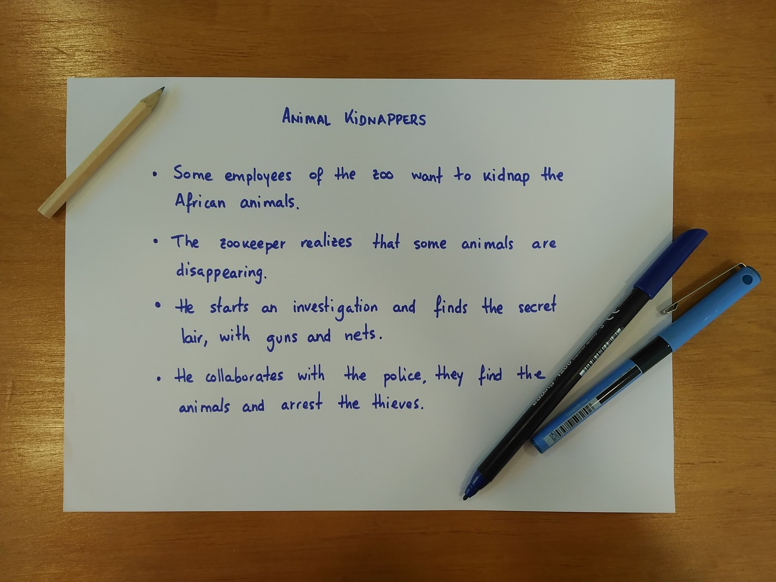 Imagine an interesting or exciting story. If you have no ideas, you can choose a poem, a song or a tale. Summarize this story in a few paragraphs.