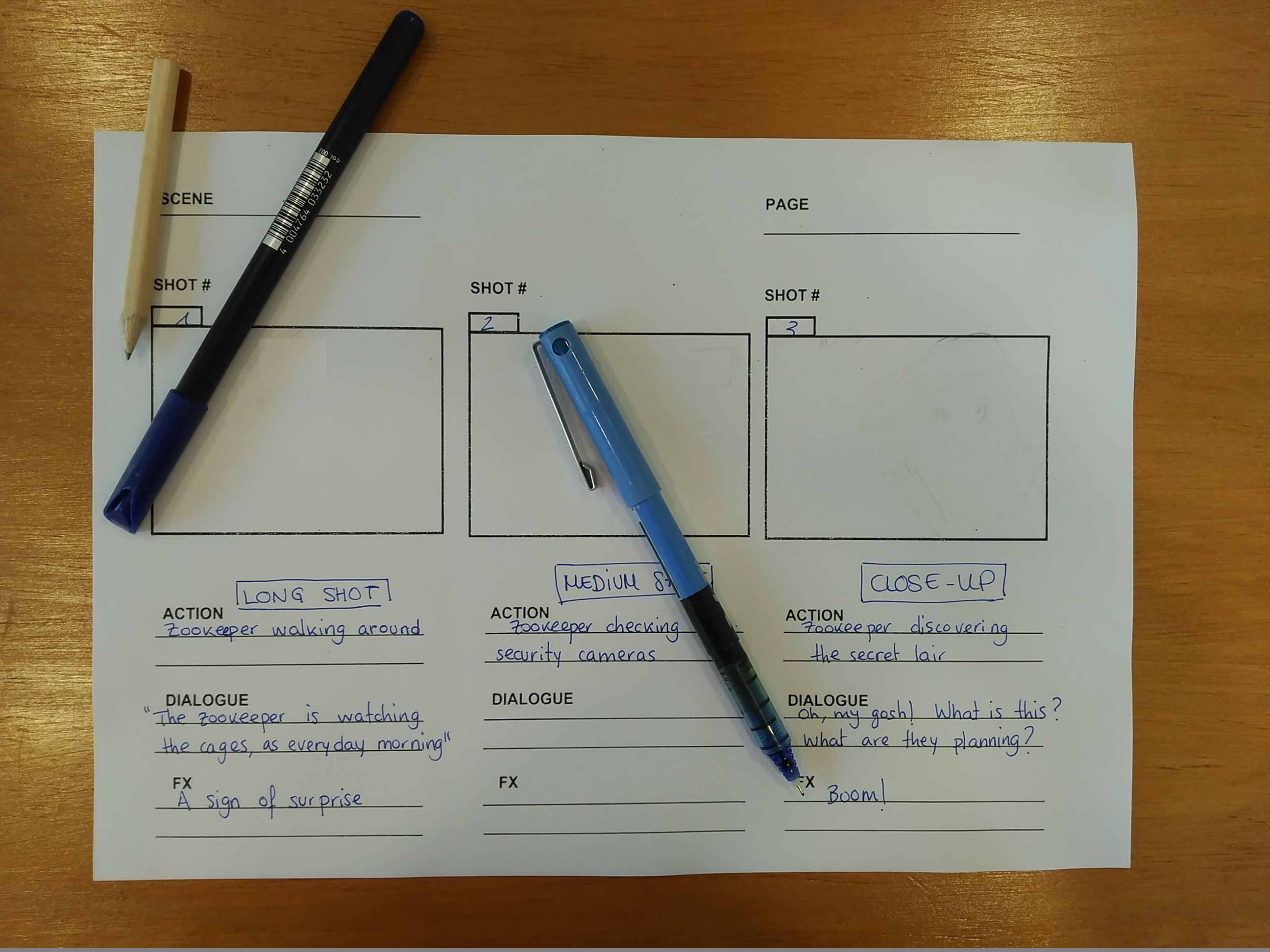 When you create a comic, you make a storyboard as a previsualization of the main scenes and a summary of the plot.