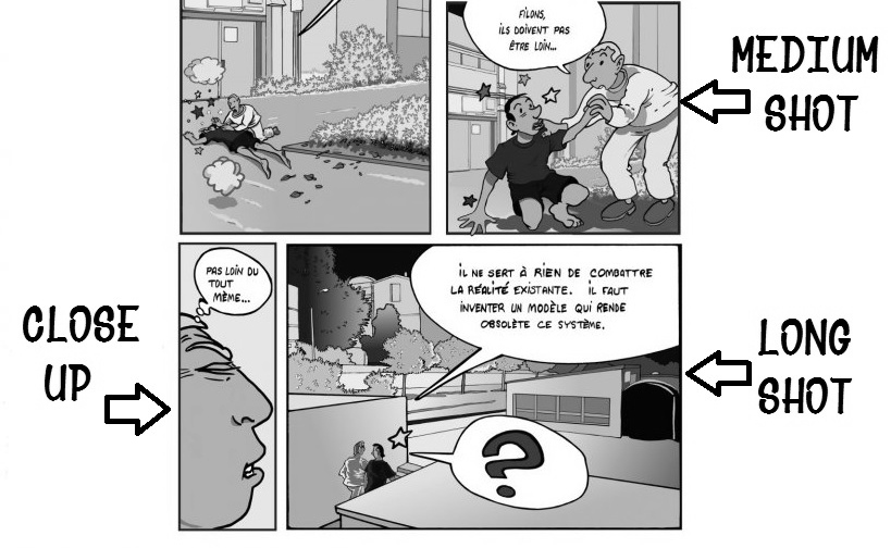 Medium Shot When you can see most of a character’s body, or a couple of character’s bodies in a panel, it is a medium shot. |