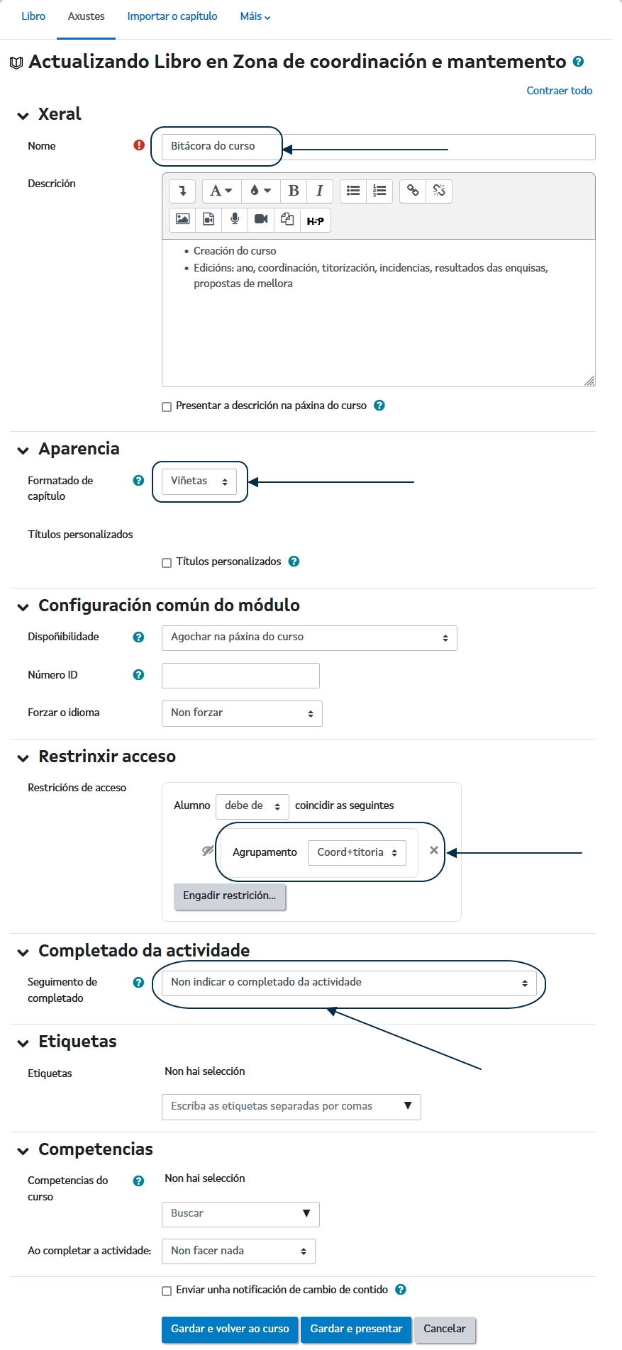 O recurso "Libro" permite incorporar una maior cantidade de información, multimedias, imaxes... que "Páxina". O libro permite "capítulos", é dicir, páxinas dentro do libro e, ademais incorpora unha árbore de navegación polo libro.
