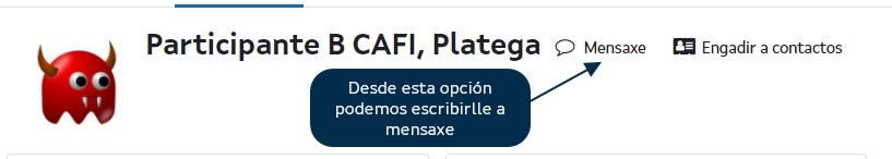 Entramos no perfil da persoa participante (por exemplo desde a listaxe de participantes ou facendo click no seu nome nun foro ou actividade
