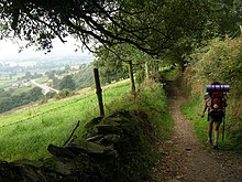Camino de Santiago es la denominación que tienen una serie de rutas de peregrinación cristiana de origen medieval que se dirigen a la tumba de Santiago el Mayor, situada en la catedral de Santiago de Compostela (España).[nota 1] En un sentido más estricto, se ha conocido históricamente como «Camino de Santiago» (hoy denominado «Camino de Santiago francés») a un itinerario que, partiendo de los Pirineos occidentales, recorre el norte de España hasta llegar a la ciudad gallega y sobre el que acaban confluyendo casi todas las demás rutas jacobeas existentes.[6] Se trata de un «camino sembrado de numerosas manifestaciones de fervor, de arrepentimiento, de hospitalidad, de arte y de cultura, que nos habla de manera elocuente de las raíces espirituales del Viejo Continente».[7]