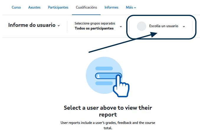 3. Selecciona a lapela informe de usuario, selecciona o usuario e amosaranse as cualificacións na vista Cualificador: