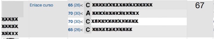 Unha vez feitos os axustes cómpre recalcula as cualificacións premendo en Volver calcular as cualificacións. E as novas cualificacións serán: