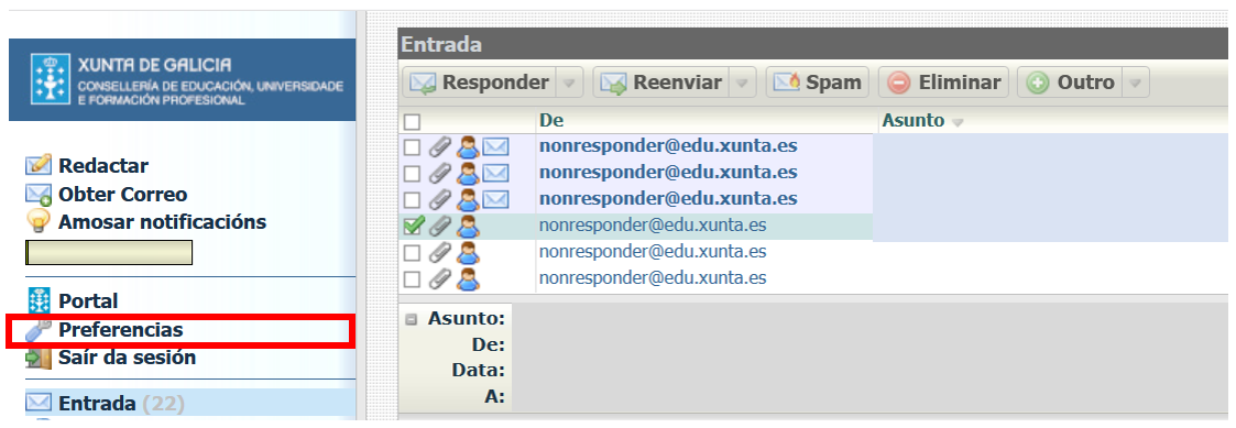 Para engadir unha firma automática a todos os correos que redactemos prememos en Preferencias: