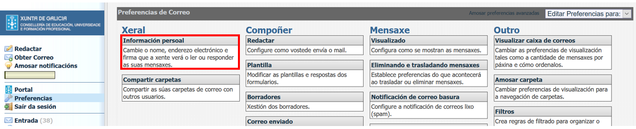 Unha vez entremos en Preferencias prememos en Xeral --> Información persoal: