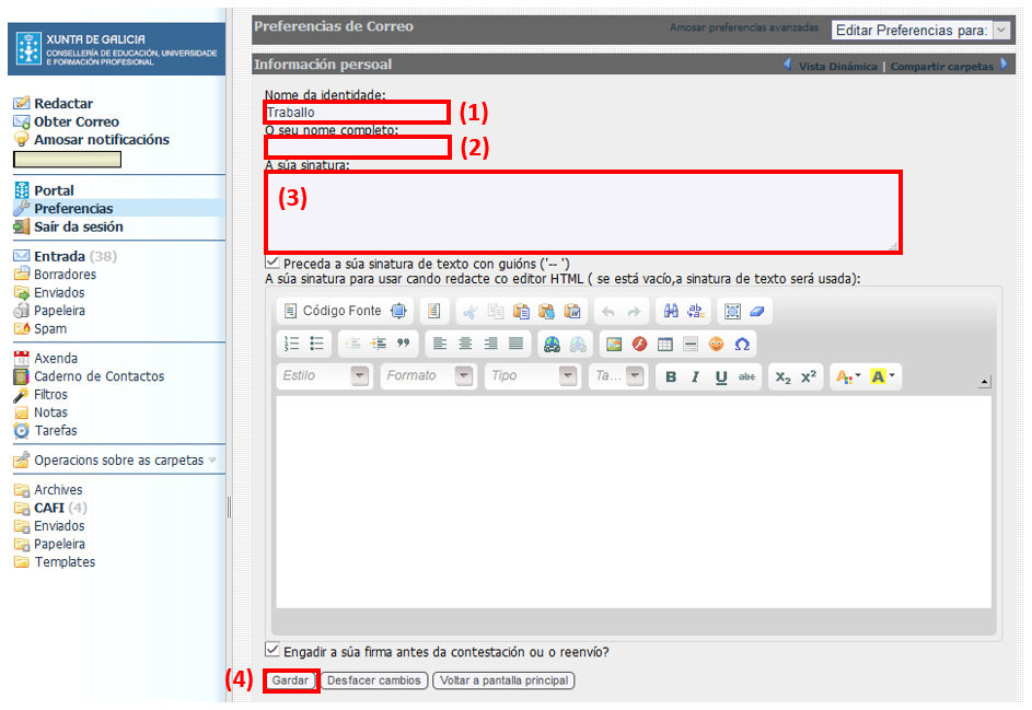 Poñemos o nome co que queremos identificarnos no correo web.