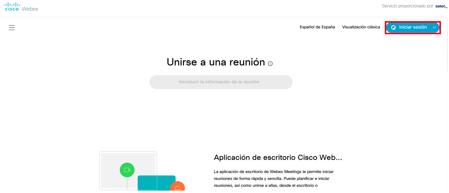 Para iniciar sesión na plataforma, unha vez activada a conta e creado o contrasinal, podemos Iniciar sesión na plataforma a través do enderezo web (URL): https://eduxunta.webex.com/ , que nos levará á seguinte xanela: