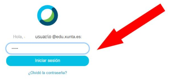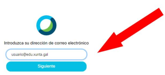 Para entrar na plataforma prememos en Iniciar sesión, que nos levará directamente á seguinte xanela onde deberemos introducir a conta de correo corporativo (@edu.xunta.gal) a onde nos chegou o correo de activación: