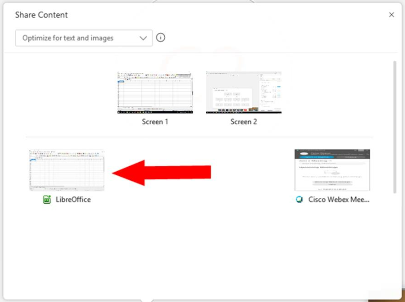 Unha vez que se preme o botón, debemos seleccionar que aplicación ou xanela ou monitor (no caso de ter varios) se quere compartir co alumnado: