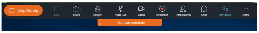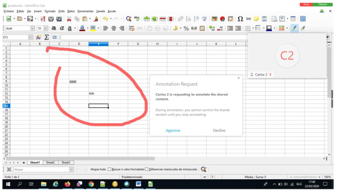 Ca que podemos facer fincapé ou aclaracións na xanela que se estea a compartir, como por exemplo: