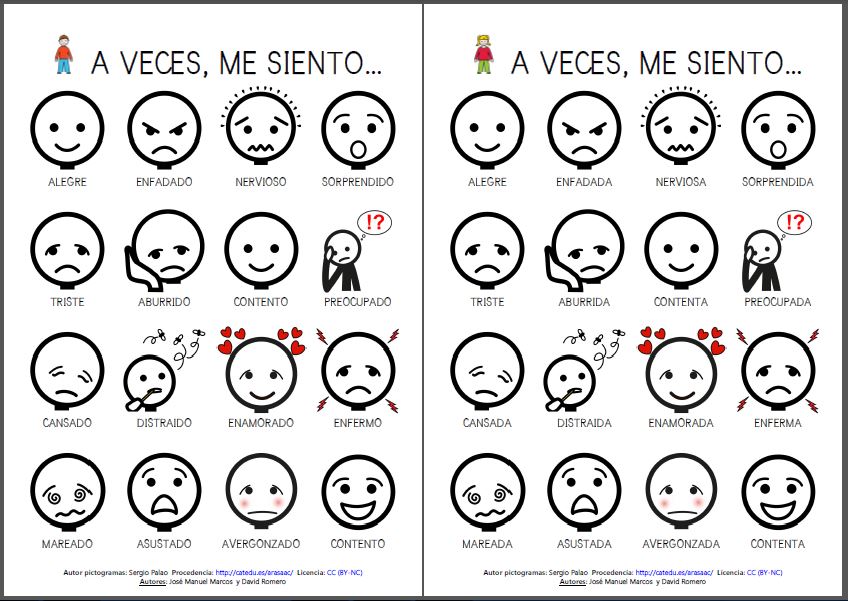 Aquí están as fichas das emocións e o exemplo de diario que comentamos no foro de novas. Tamén engadimos uns apoios visuais e outras actividades para identificar as emocións (preme aquí para velas).