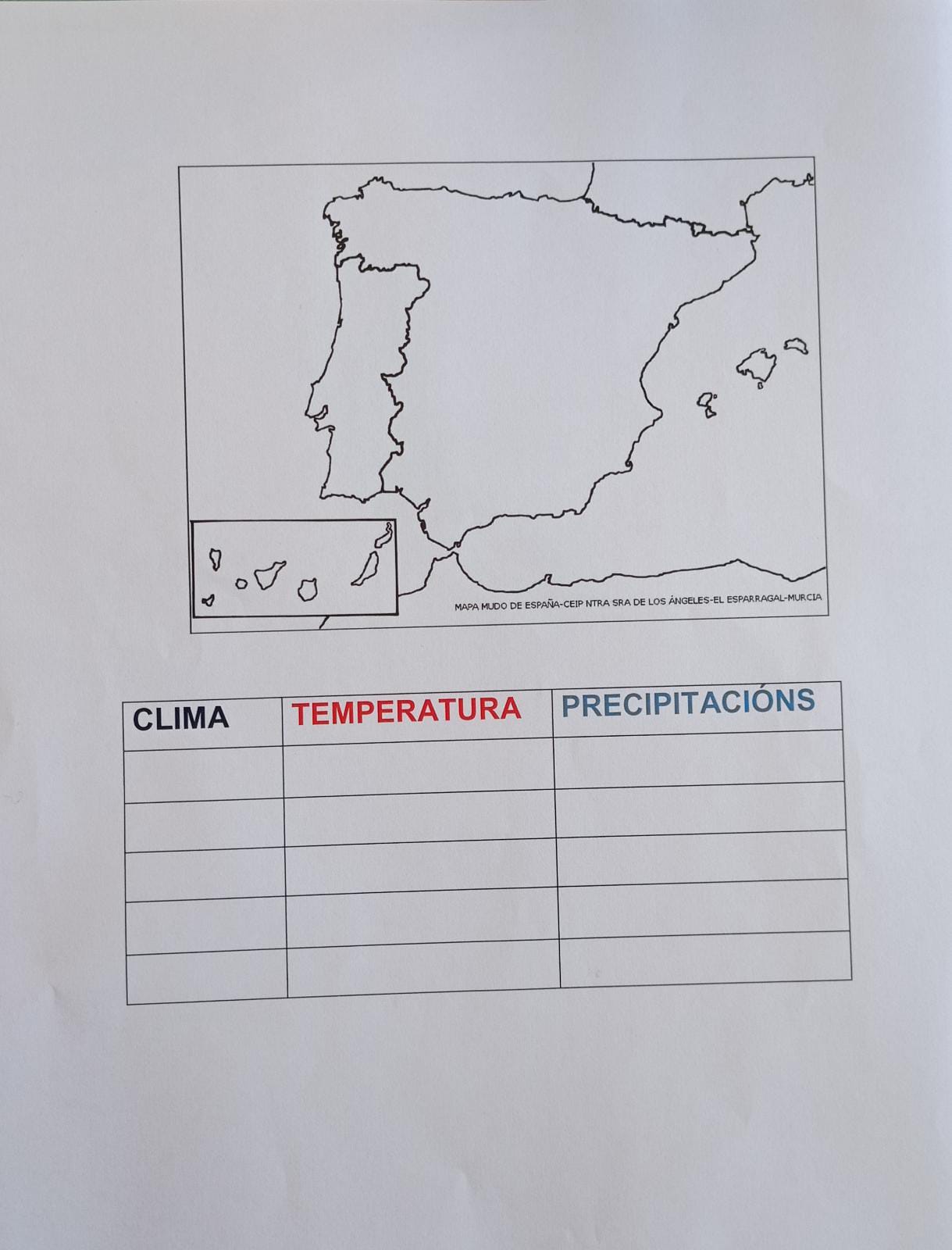 No mapa debedes colorear os climas de España.