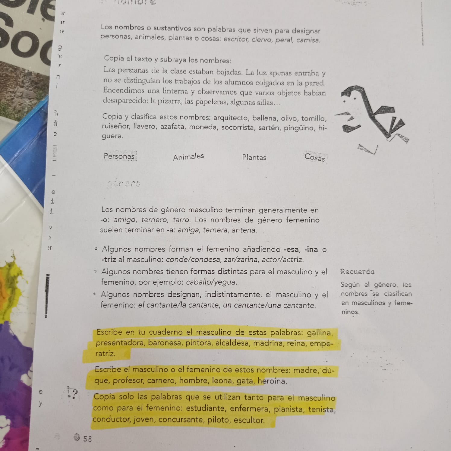 Lengua Castellana: ficha ( os que viñestedes hoxe polo material púxenvola no medio do libro) nela aparece a páxina 58, facemos só esa ( son 3 exercicios).