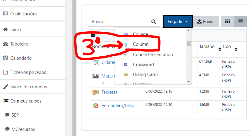 3.- Contidos Agrupados: Lista de contidos "Column"