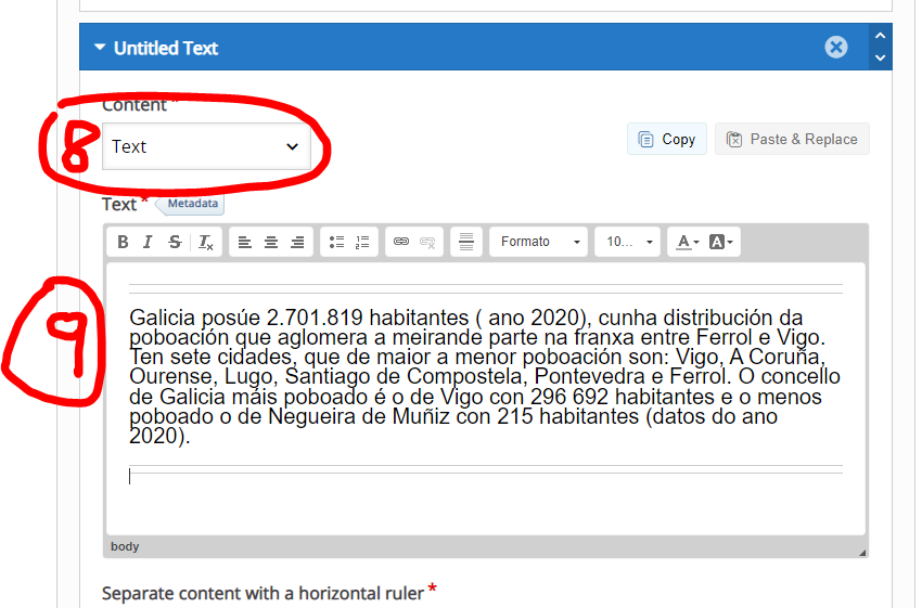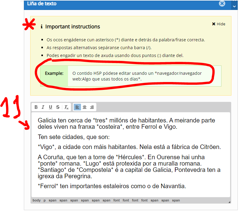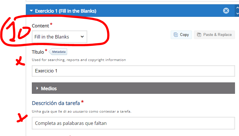 Imos inserir: 1º unha imaxe (Image). 2º Un texto (Text). 3º Encher os ocos (Fill in the Blancks)