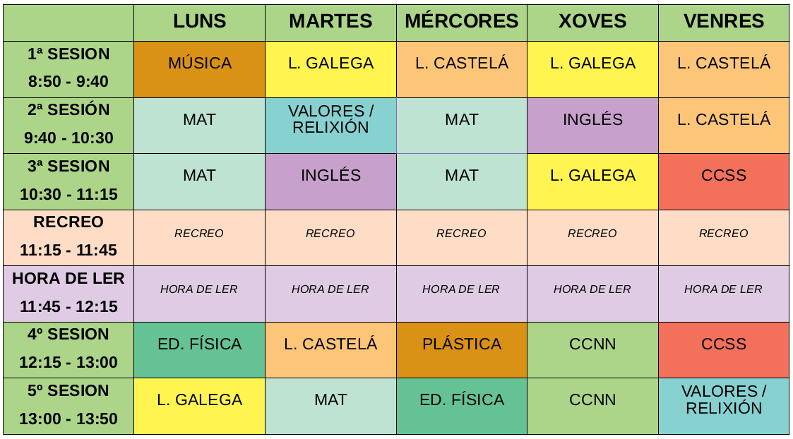 Horario (Para facerse unha idea, pero sen intención de que o sigades.)