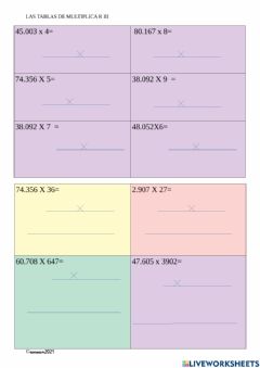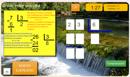 Ficha de operación de dividir. Imprime a ficha e fai as operacións. Tamén podes copialas na túa libreta.