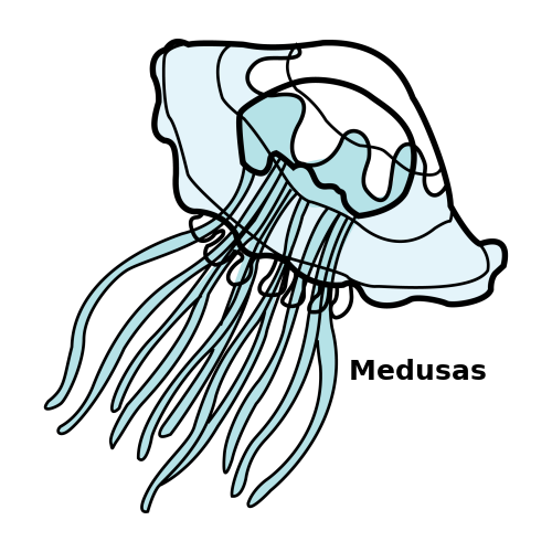 Animal mariño brando e transparente, co corpo xelatinoso en forma de paraugas ou de campá, do que saen varios tentáculos e uns filamentos irritantes que poden ser tóxicos. Existen numerosas especies.