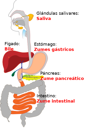 • Zume pancreático: Fai posible a dixestión dos azúcres. Elabórao o páncreas e incorpórase aos nutrientes tan pronto como pasan ao intestino delgado.
