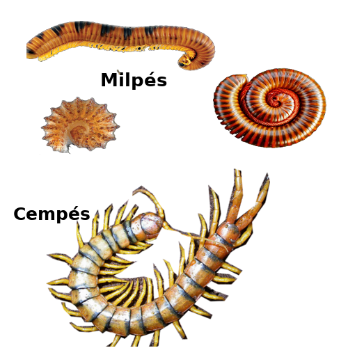 MIRIÁPODOS Terrestres. Cabeza e tronco alongado con múltiples pares de patas. Varios ollos simples. Antenas |