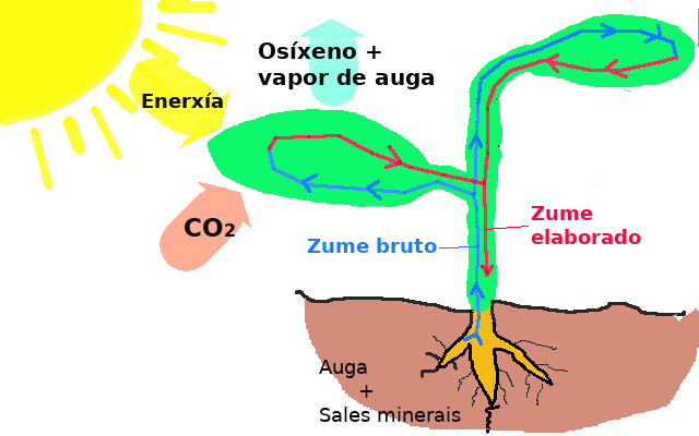auga + sales minerais + anhídrido carbónico + enerxía =
