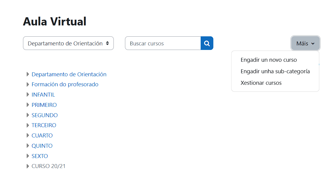 Para engadir un curso na aula virtual do noso centro debemos contar cos permisos adecuados. Acceso ao mantemento de cursos