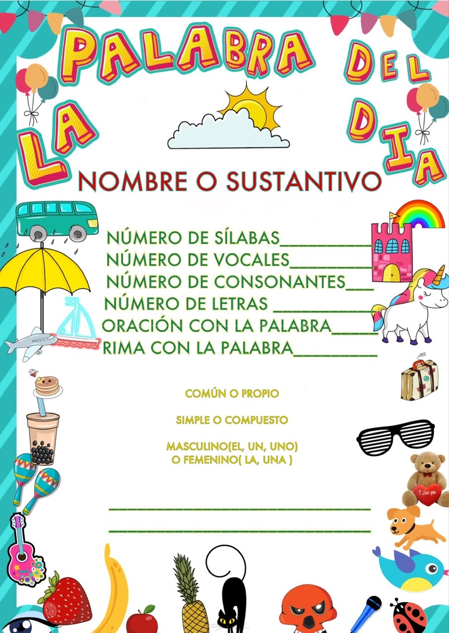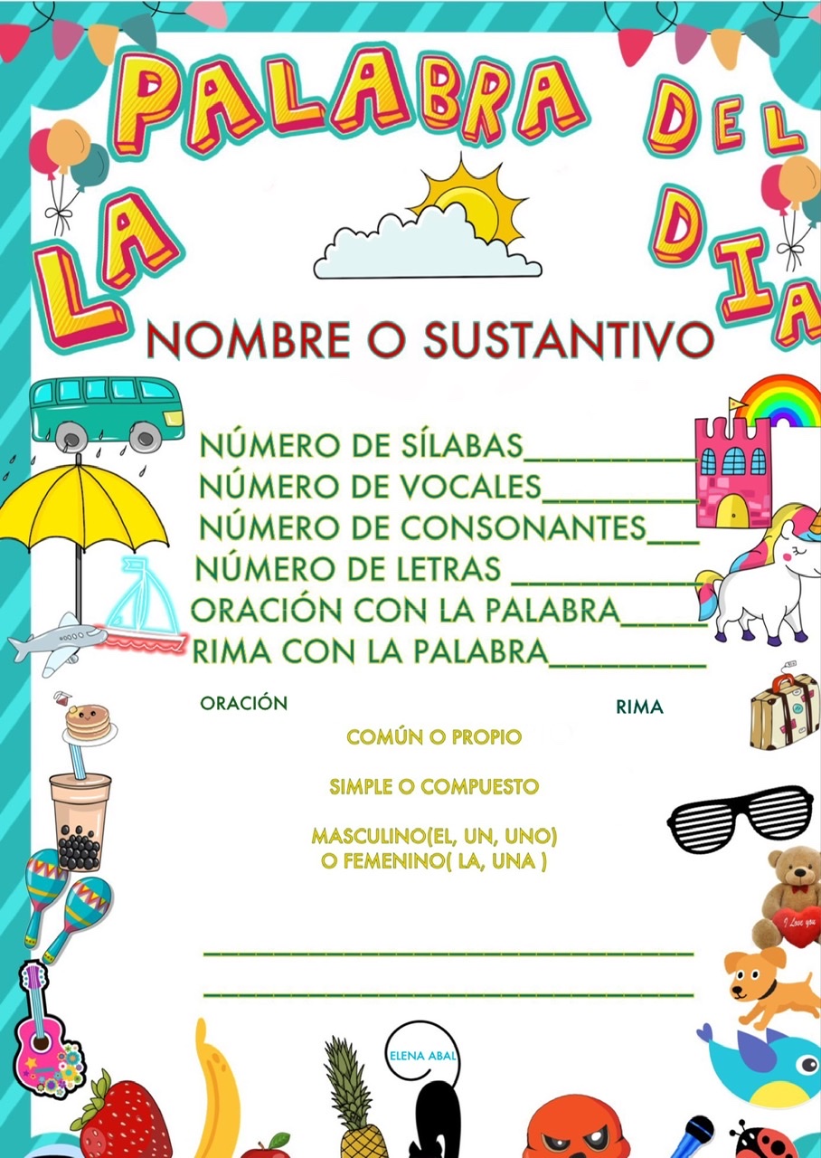 - Palabra protagonista con verbo o palabra protagonista con nombre.