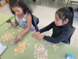 - El jueves en hora de experimentos y robótica contaremos monedas de 1, 2, 5 y 10 céntimos. Se trata de poner en práctica todo el trabajo que llevamos haciendo desde el segundo trimestre. Contamos de 1 en 1, de 2 en 2, de 5 en 5 y de 10 en 10 las monedas. Haremos grupos de 10 con las monedas de 1 céntimo, grupos de 5 monedas de 2 céntimos, grupos de 20 monedas de 5 céntimos y dejamos sueltas las pocas monedas de 10 céntimos que hay.