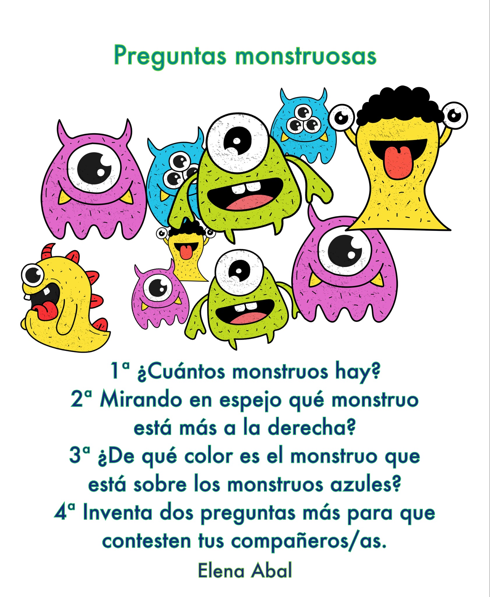 - Problemas orales que impliquen conceptos como sumas, restas, derecha, izquierda, arriba, abajo, delante, detrás, dentro, fuera, colores y formas.