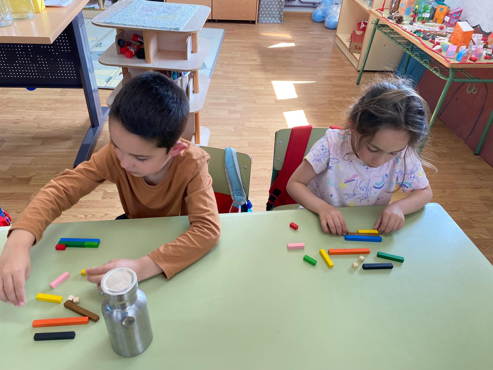 ALUMNADO DE 1º DE EP TRABALLANDO COS COLARES ARITMÉTICOS