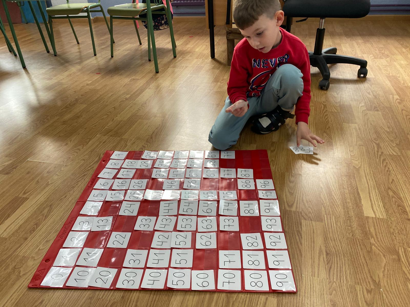 ALUMNADO DE 1º DE EP TRABALLANDO COS COLARES ARITMÉTICOS