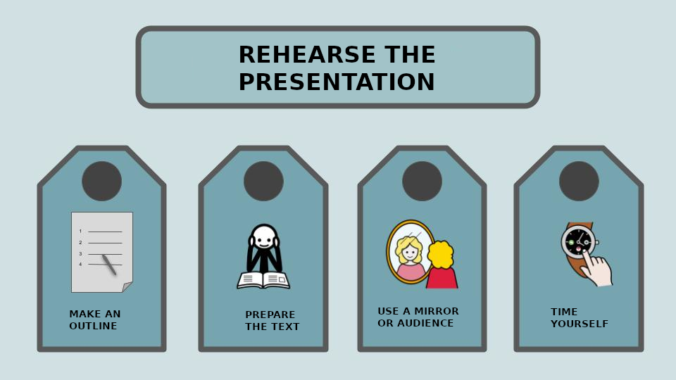 Start by creating a script, so you don't forget anything important. Then, prepare your presentation to avoid reading the text, hesitating and improvising. Rehearse in front of a mirror or an audience.