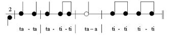 O alumnado de 2º de Educación Primaria deberá crear un esquema rítmico coas figuras de negra, silencio de negra e dúas corcheas. Que o interpreten con diferentes obxectos, fixándose na natureza do timbre de cada un.