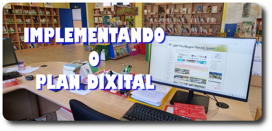 Neste curso reflectimos todo o traballo realizado ao longo do curso 2022/2023 en relación ao grupo de traballo titulado "Implementando o plan dixital" que estamos a desenvolver dentro do PFPP do CEIP Plurilingüe Manuel Sueiro.