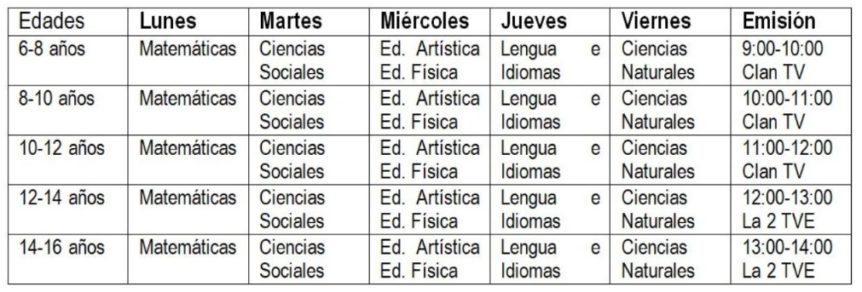 Trátase dunha programación especial de cinco horas diarias con contidos educativos, que se emitirá en aberto pola mañá, de lunes a venres, en Clan TV e  La 2 de TVE.