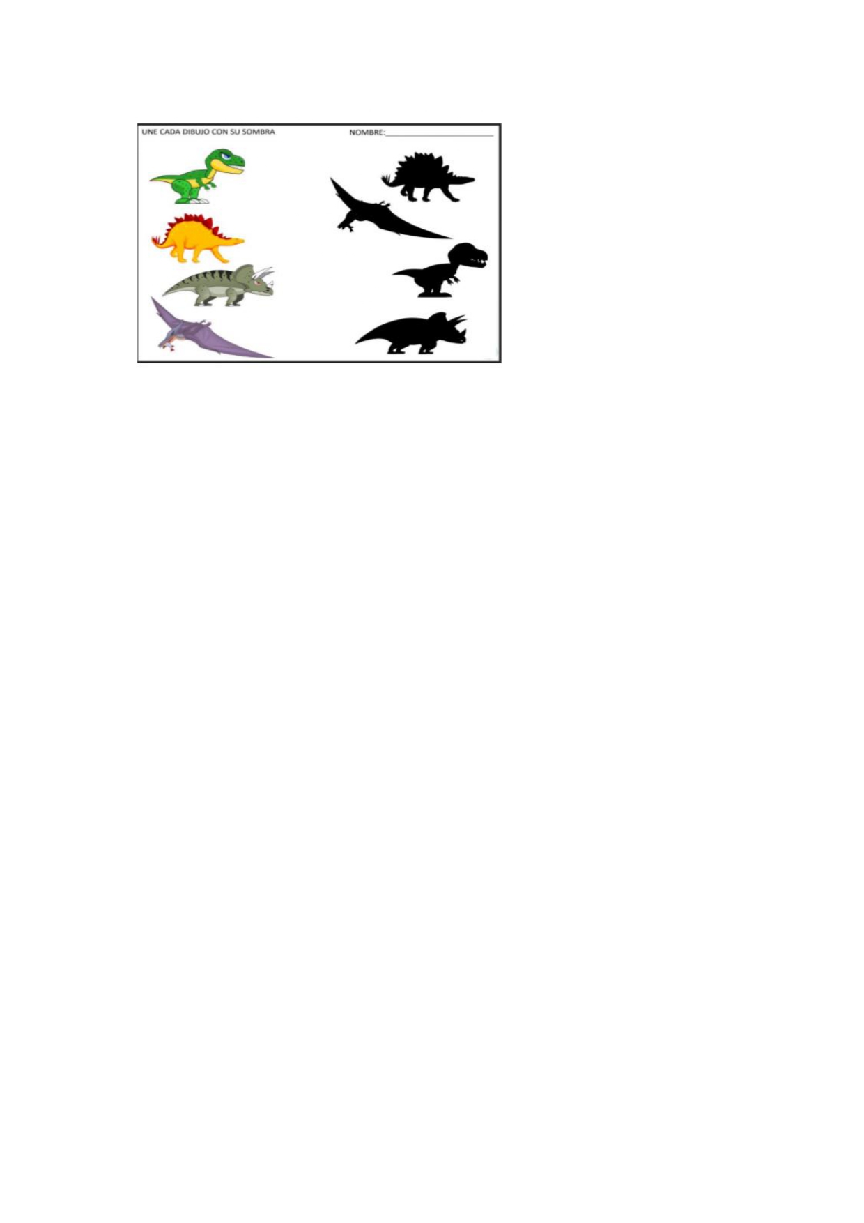 Se non podes imprimir a ficha escribe nun folio a orde dos dinos de arriba cara abaixo e escribe ó seu lado o número da sombra que lle corresponde.