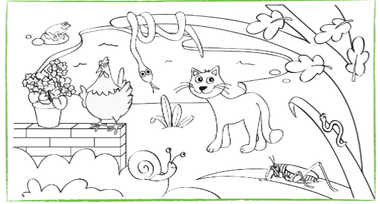 - Agora copia na libreta: este texto, despois si podes imprime esta ficha e colorea SOLO OS ANIMAIS , si non podes fai unha lista cos nomes de todos os animais que aparecen na ficha.
