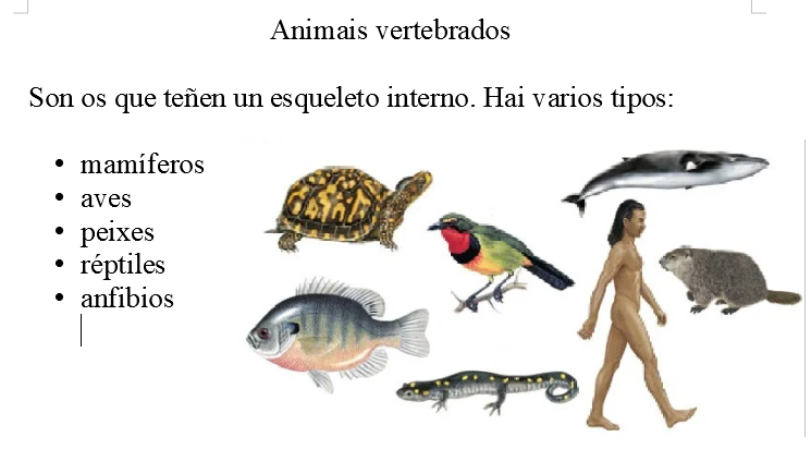 - Naturais: Os animais vertebrados, lee, copia e debuxa tres animais: Escribe debaixo de cafa un de que grupo é.