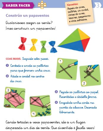 Propoñovos unha actividade, facer un papaventos, será moi divertido facelo voar un día de vento. Aquí tes algunhas ideas de como facelo e que materiais utilizar pero podedes utilizar outros parecidos que teñades na casa.