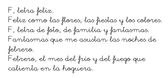 Lee y en la libreta de lengua copia el poema , después rodea las palabras que tienen la letra F/f y escribe cuatro frases usando palabras del texto: