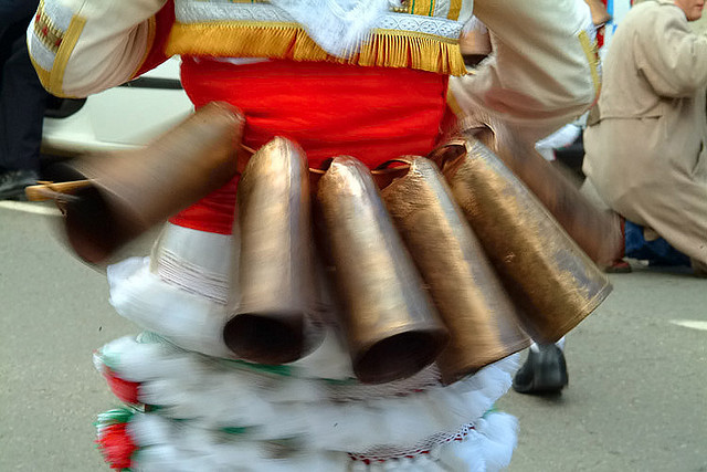 Os cigarróns e os peliqueiros levan chocas colgadas no cinto e un látego con fitas de coiro.